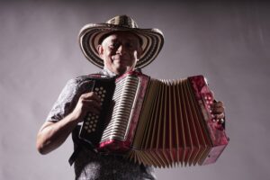 L’accordéon est arrivé en Colombie par les ports maritimes, venant d’Allemagne. Dans des régions comme La Guajira ou le Magdalena, on l’a adopté pour créer ses propres mélodies. Lorsqu’il arrive chez nous, le maître Andrés Landero s’y intéresse : il commence par jouer les paseos et merengues qu’il entend, mais comme il vient d’une région profondément marquée par la cumbia, il adapte les mélodies des gaitas à l’accordéon. Le public apprécie énormément, au point qu’on le surnomme encore aujourd’hui le roi de la cumbia. Cet instrument européen est désormais aussi le nôtre, car on peut tout jouer avec lui.