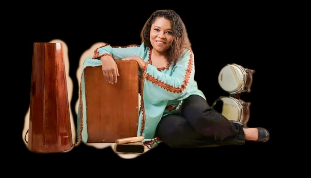 Yo muy pequeña escuchaba, siempre me gustaban los sonidos de los tambores. A los tres años sacaba el cajón de la mesita de mi velador, lo volteaba, botaba todo lo que tenía guardado ahí y me ponía a tocar ahí, en el cajón de mi velador. Mi papá es músico, se ponía a practicar, y yo lo acompañaba y siempre lo escuchaba, y eso me quedaba grabado. Prácticamente, yo autodidacta, nunca fui a una escuela para aprender percusión. Vengo yo a tocar profesionalmente el Cajón, bongo, congas. Tocaba en una orquesta que se llamaba las Hechiceras de la Salsa. Posterior a eso, antes de las Hechiceras tocaba en un grupo criollo : Ambiente criollo ; netamente música criolla, y toco percusión en esta agrupación.